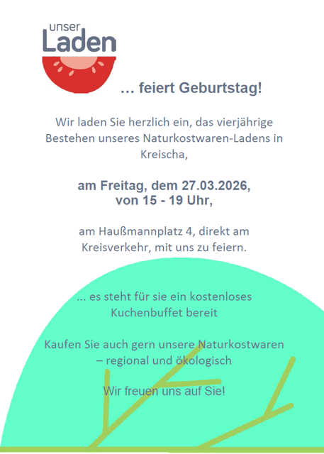Liebe Kundinnen und Kunden, ab sofort können Sie alle Produkte aus unserem Laden auch bestellen und die fertig gepackte Kiste zu Ihrem Wunschtermin abholen. Nach Vereinbarung ist auch eine Anlieferung in Kreischa und Umgebung möglich.